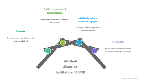 In termini di responsabilità, il facilitatore FRIEND deve avere una conoscenza approfondita dei materiali del programma, della struttura e del contenuto delle diverse sessioni, nonché degli obiettivi e dei risultati specifici che il programma FRIEND si propone di raggiungere.