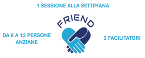 Il programma di apprendimento misto FRIEND è organizzato in 7 sessioni. Come visto in precedenza, lo scenario di implementazione prevede gruppi di 8-12 anziani, seguiti da 2 facilitatori, con una frequenza di 1 sessione a settimana (Figura 4) – questa è una sintesi di quanto già esposto nel Modulo 3.